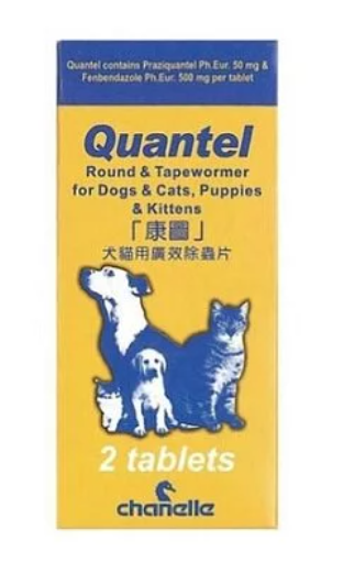 Quantel康圖除蟲片可一次過驅除貓狗體內14-18種寄生蟲,如蛔蟲、鉤蟲等