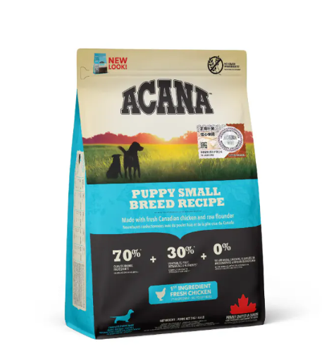 - Acana 愛肯拿小型幼犬配方,以當地自由放養雞與完整雞蛋、野生捕撈的比目魚,以「Wholeprey」比例每日新鮮送達廚房,獨一無二的營養美味。