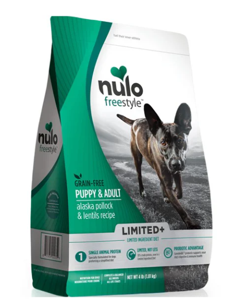 Nulo 的 FreeStyle™ Limited+ 幼犬及成年的阿拉斯加狹鱈配方是一種蛋白質含量較高、碳水化合物含量較低的配方,專為喜歡簡化飲食的狗狗而設計。